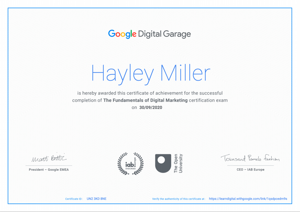 30th September 2020: The Fundamentals of Digital Marketing from Google (40 hours)