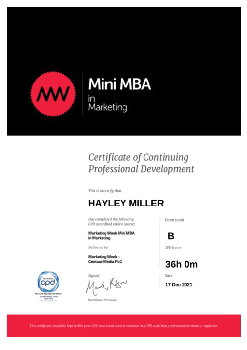 17th December 2021: Marketing Week MBA – Marketing (Grade B)