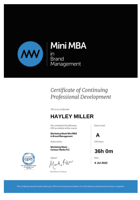 6th July 2022: Marketing Week MBA – Brand Marketing (Grade A)